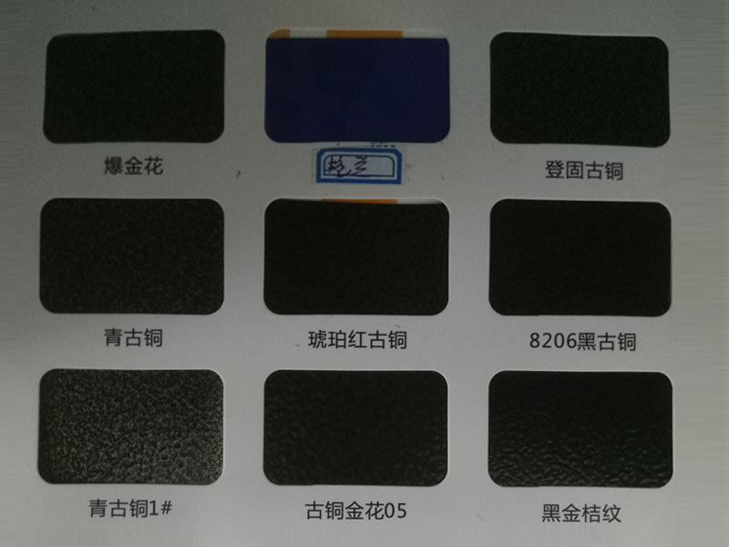 塑粉色卡是我公司主要生產(chǎn)的產(chǎn)品之一。產(chǎn)品具有**的流平性、附著力強(qiáng)、耐高溫、高光澤、美術(shù)立體感強(qiáng)等特點(diǎn)。主要產(chǎn)品有純聚酯型、純環(huán)氧型、混合型、金屬型、美術(shù)型等系列的高光、啞光、無光、磨砂、錘紋、大理石紋、仿銅系列、仿金屬漆系列等三十多個(gè)類型上千個(gè)色別的粉末涂料。